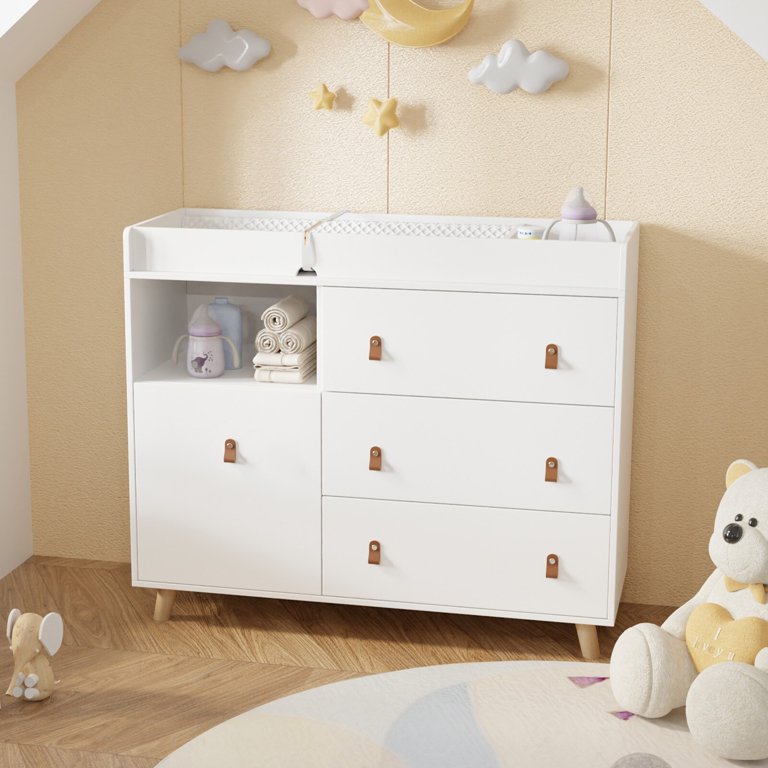 Baby Changing Table Dresser With 4 Drawers Shelf Hidden Trash Storage White 4 Drawer Walmart Com